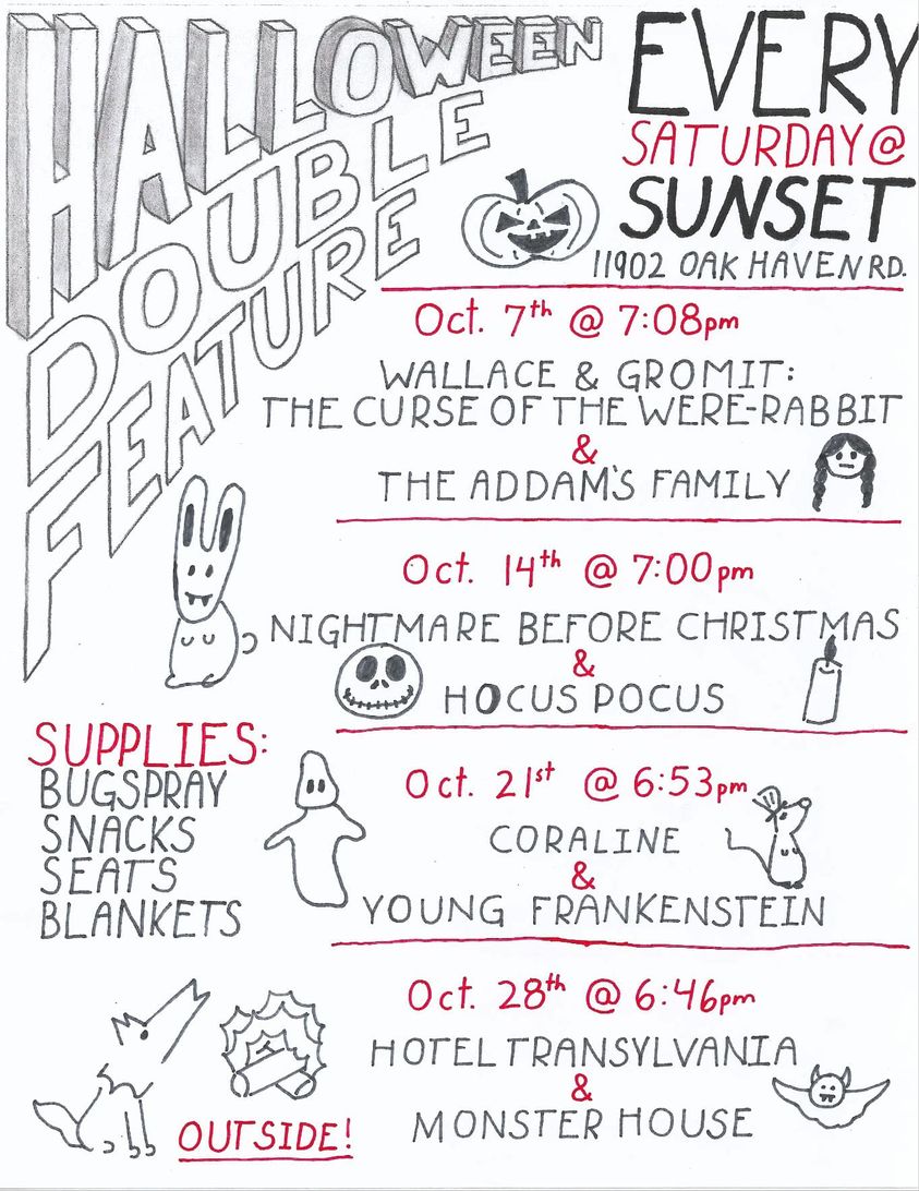 (above two photos from the 2022 Halloween Parade) - Saturdays in October: Halloween movies on Oak Trail