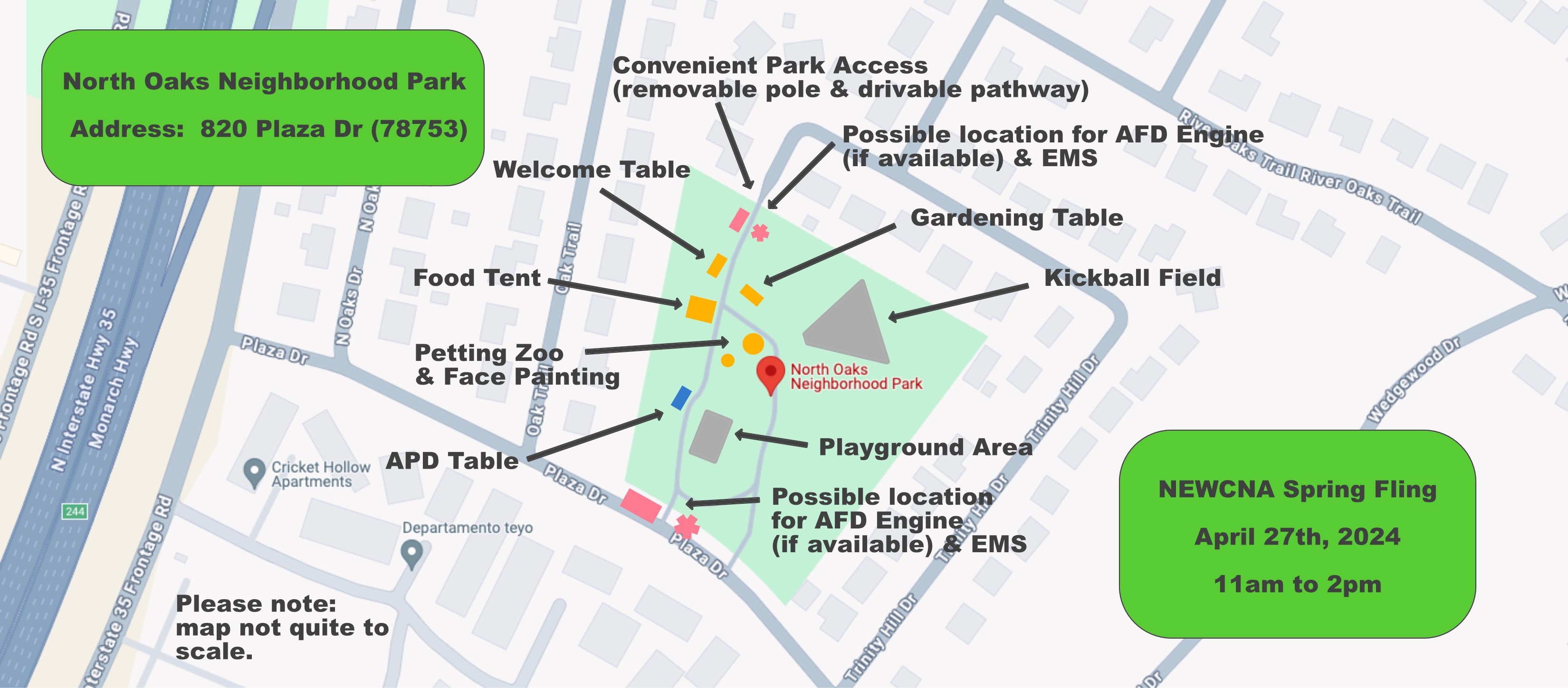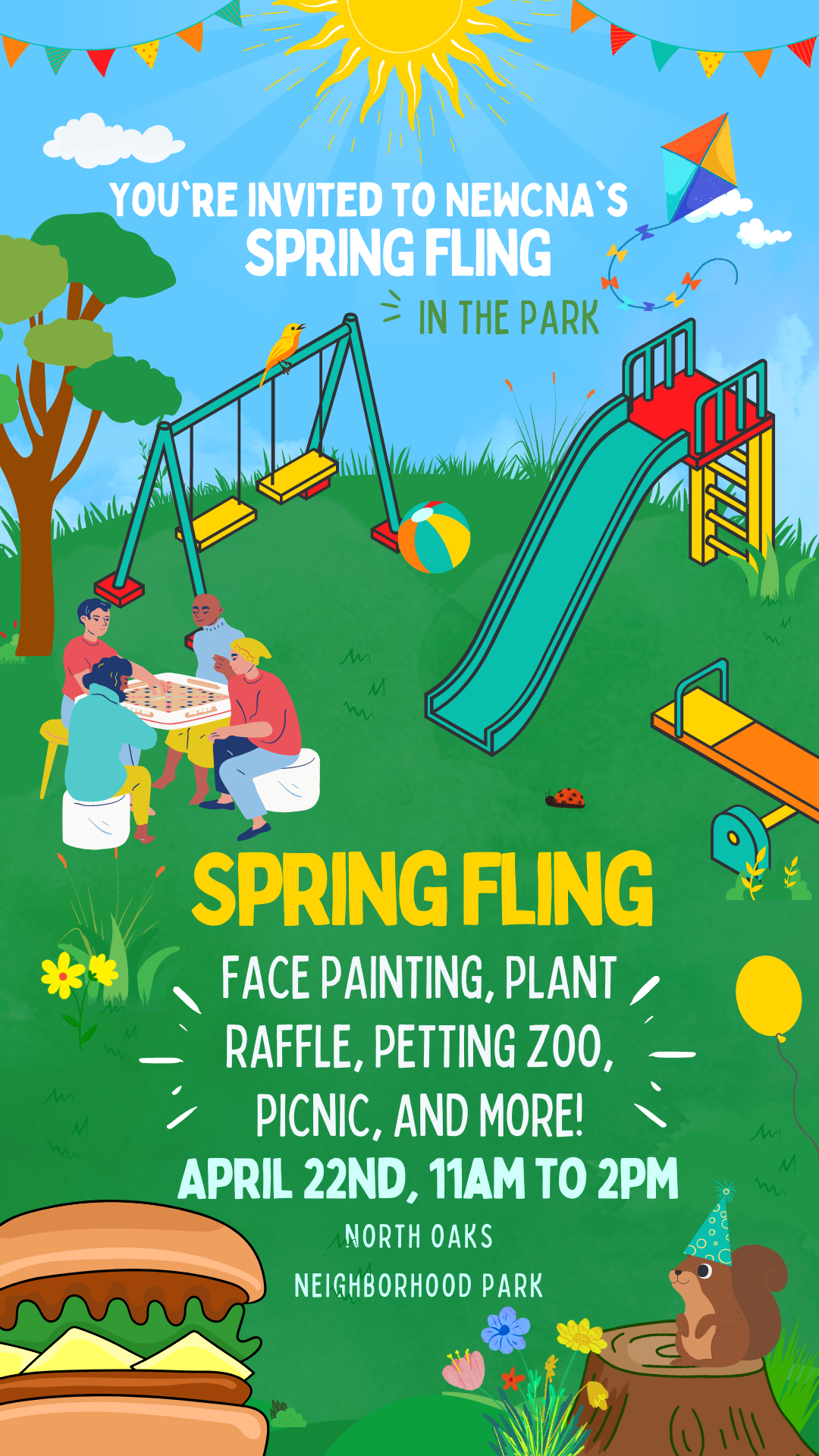 - April 26th, 2025: Spring Fling at North Oaks Neighborhood Park, 11 am to 2 pm