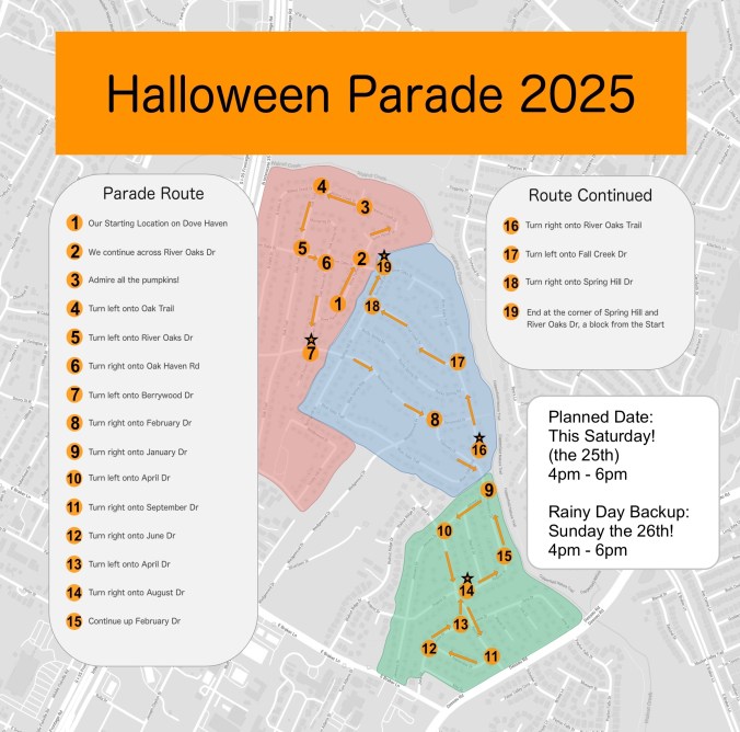 - October 26th, 2024: 5th Annual Halloween parade, 4pm to 6pm