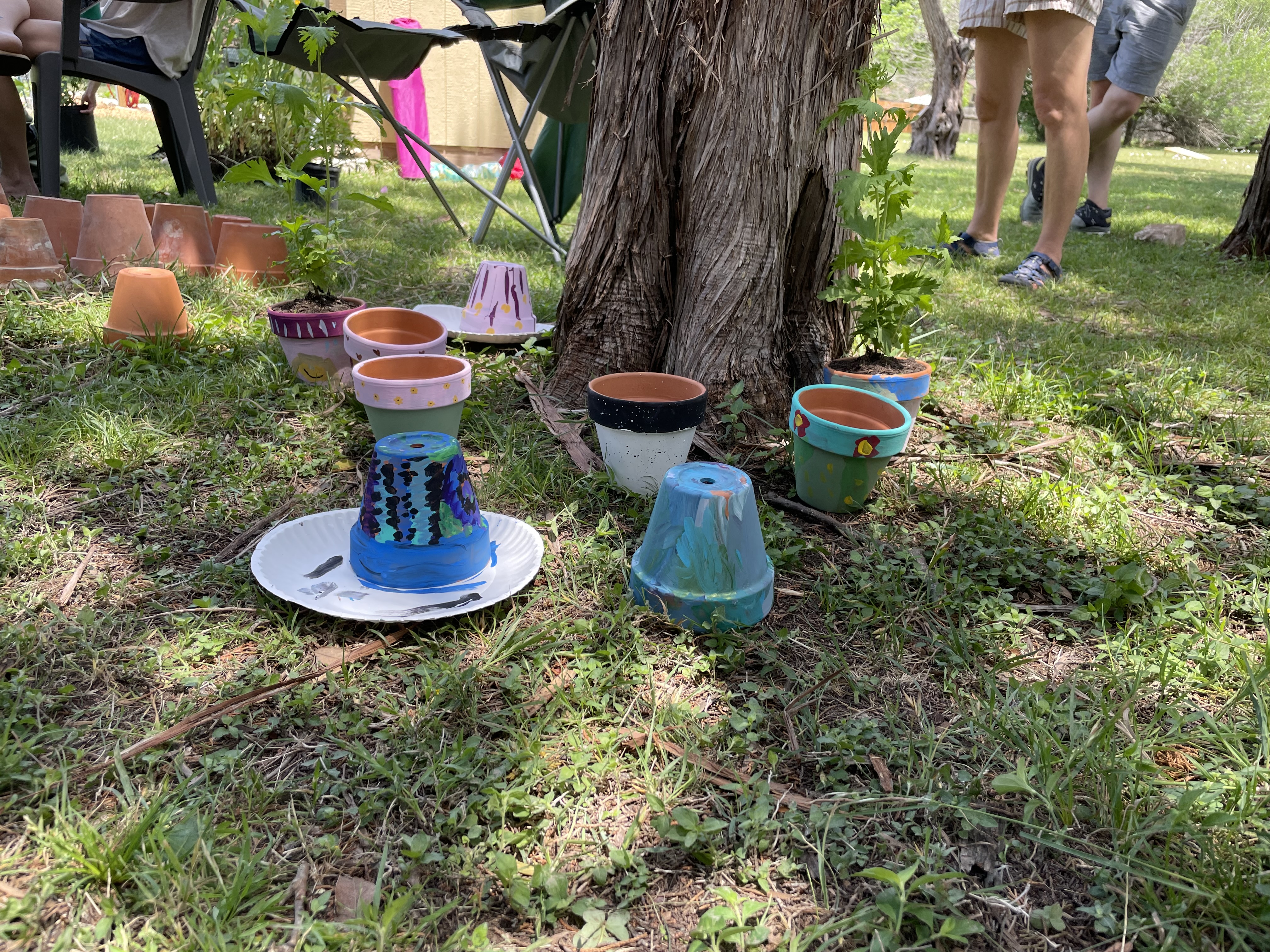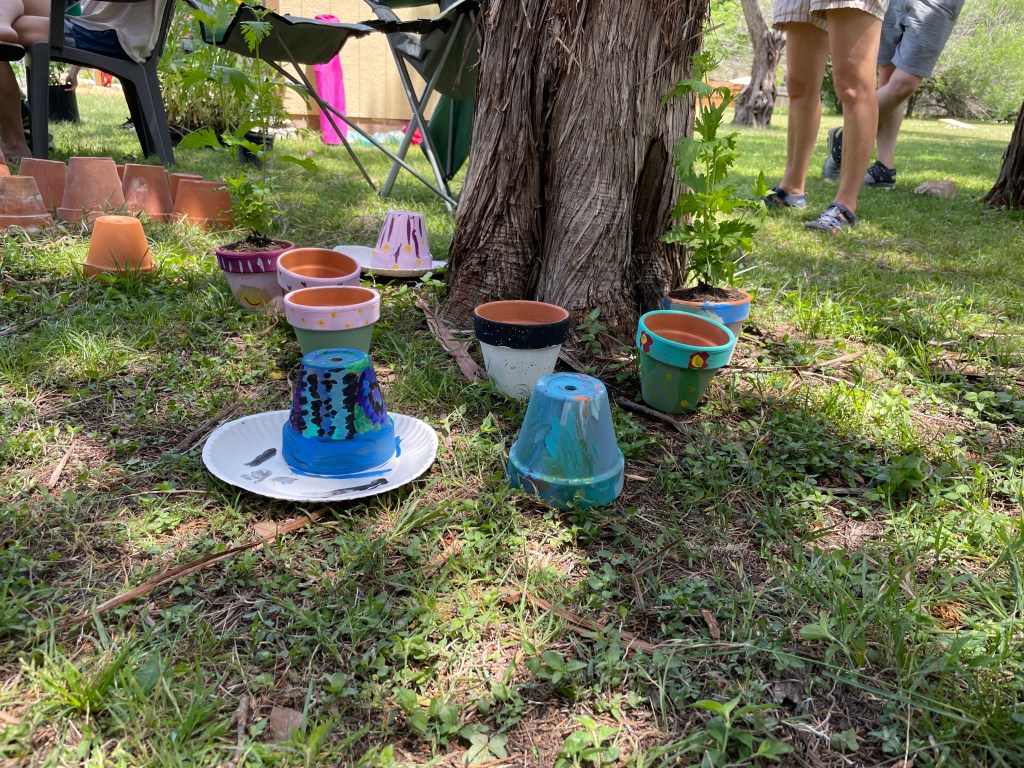 Photos of the Master Naturalist table where kids could decorate a plant pot and some friendly folks: